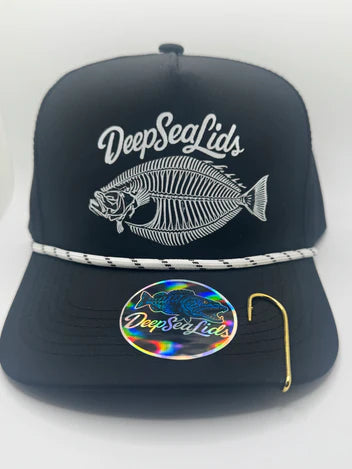 This all-black hat features our black & white Skeleton Halibut logo, designed for those who grind on the water and rep it dockside. Minimal color. Maximum attitude. A must-have lid for halibut hunters and saltwater die-hards.